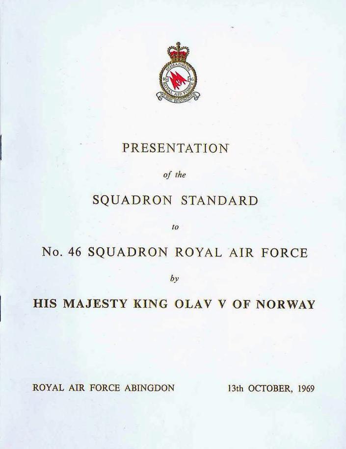 Presentation of No 46 Squadron Standard by His Majesty Air Chief Marshal King Olaf V of Norway RAF Abingdon 13 October 1969