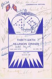Menu cards after this point remained basically the same design but with the crest being changed to a single colour, red.